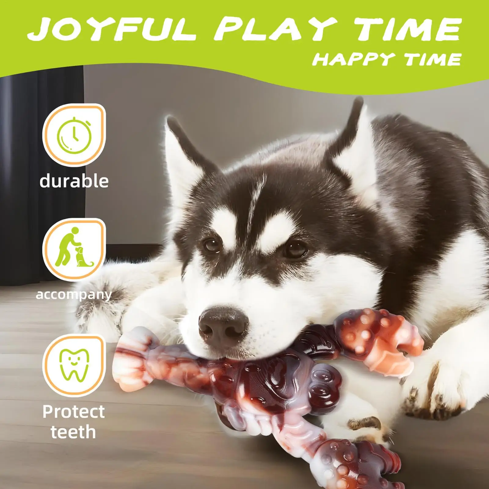 2.Healthy Chewing Habit: Chew toys for dogs encourage natural chewing instincts by providing a satisfying outlet for teething urges, preventing destructive behaviors, supporting hygiene, and keeping pets entertained in both crate training and play scenarios