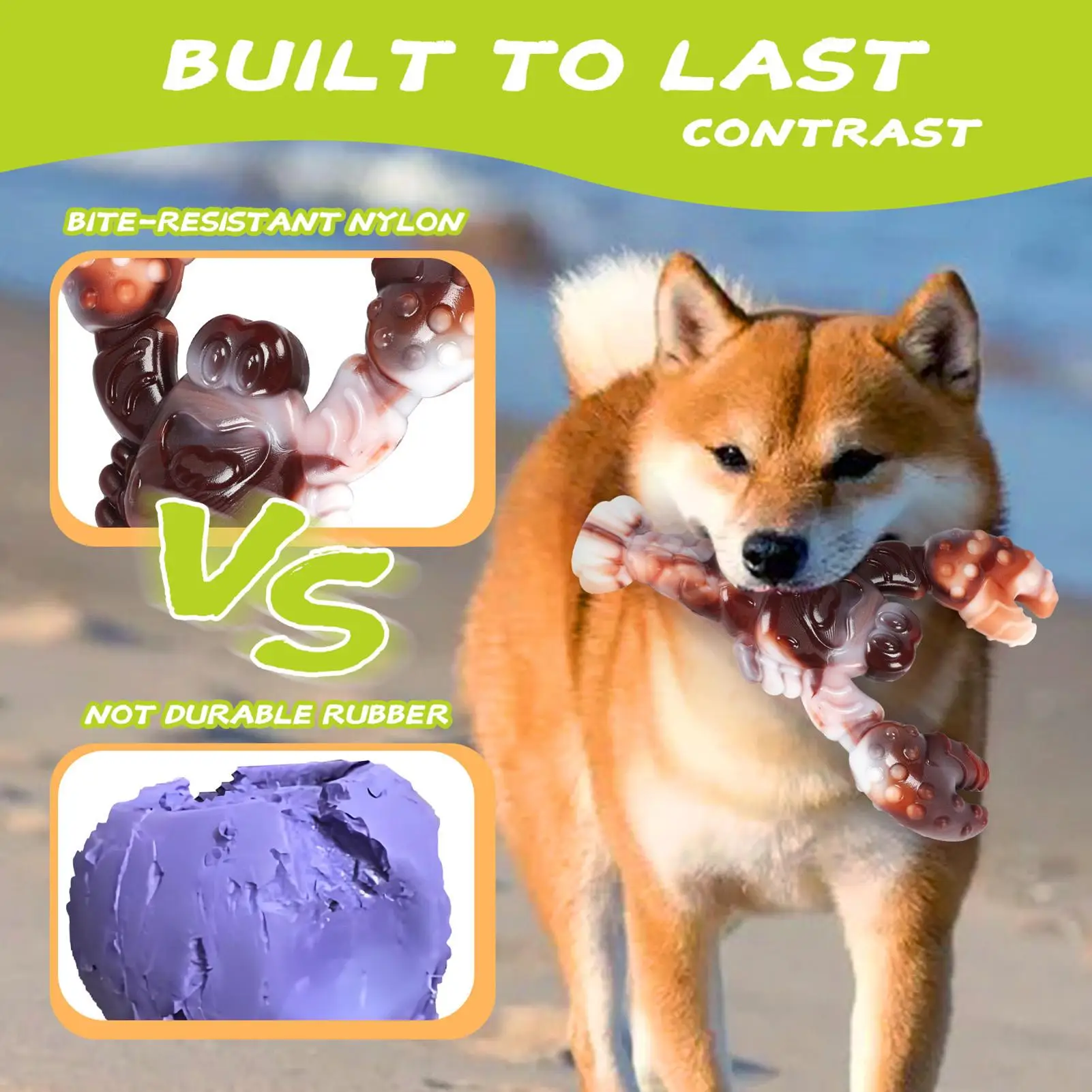 1.Tough Nylon: These dog chew toys combine high-quality nylon material with advanced resistant against extreme chewing, offering peace of mind to pet parents as their furry companions enjoy more hours of safe and satisfying fun