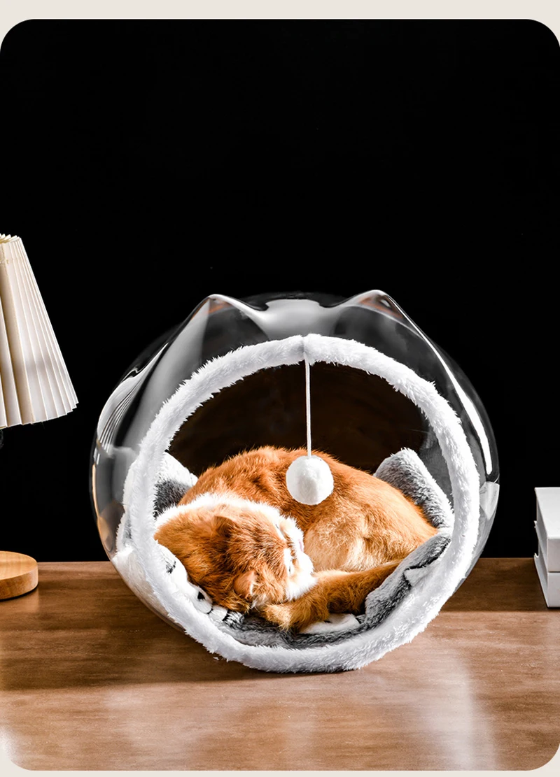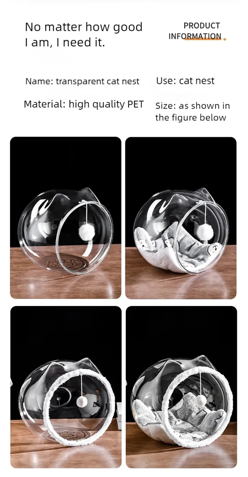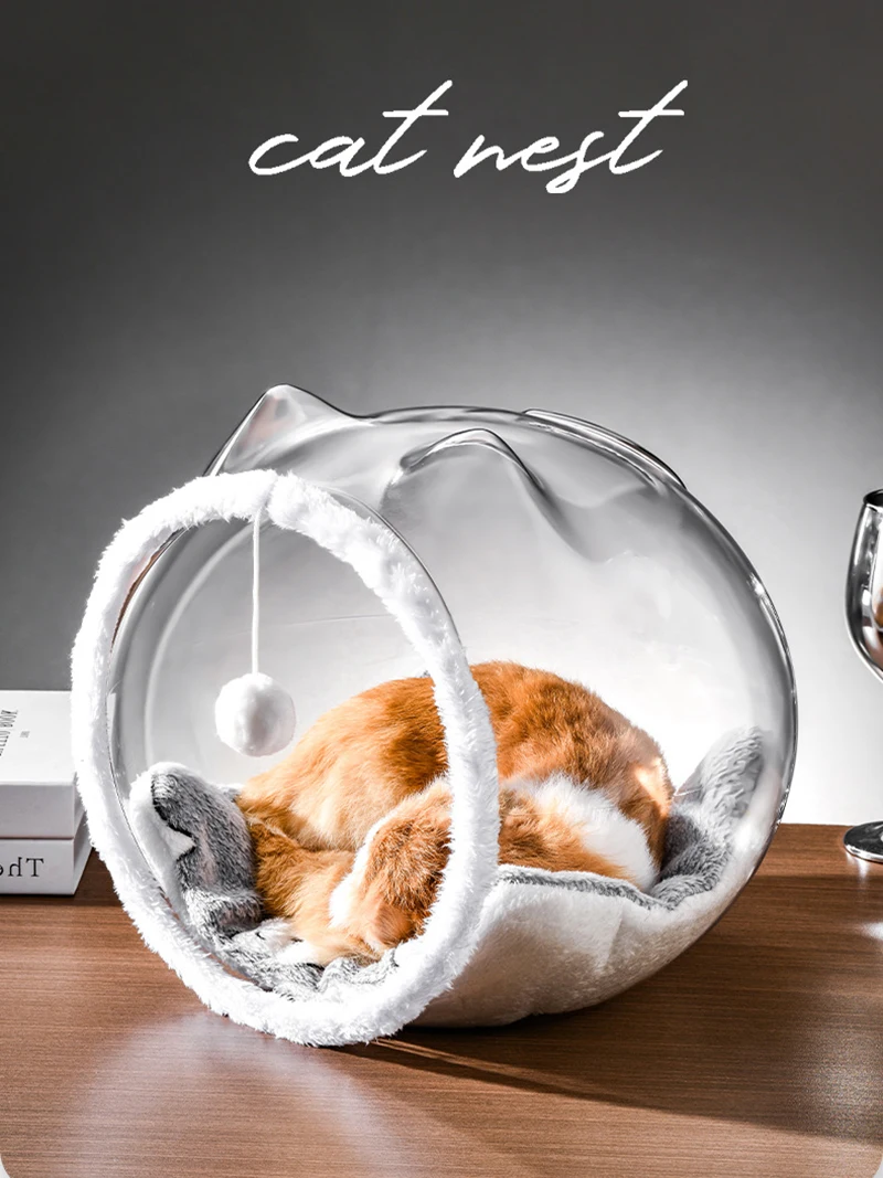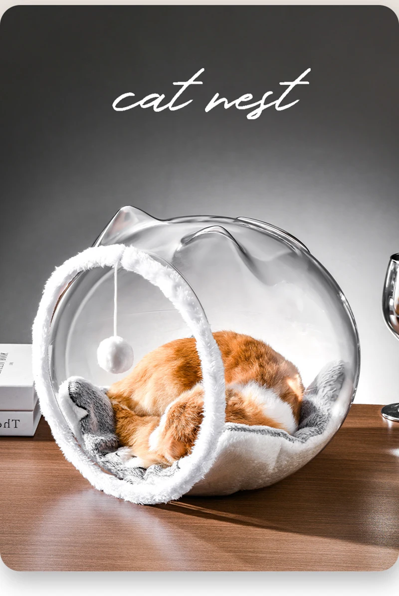 Simple and luxurious home cat bed, easy to maintain for pets, transparent cat cage, breathable, small size, non stick to fur, sp
